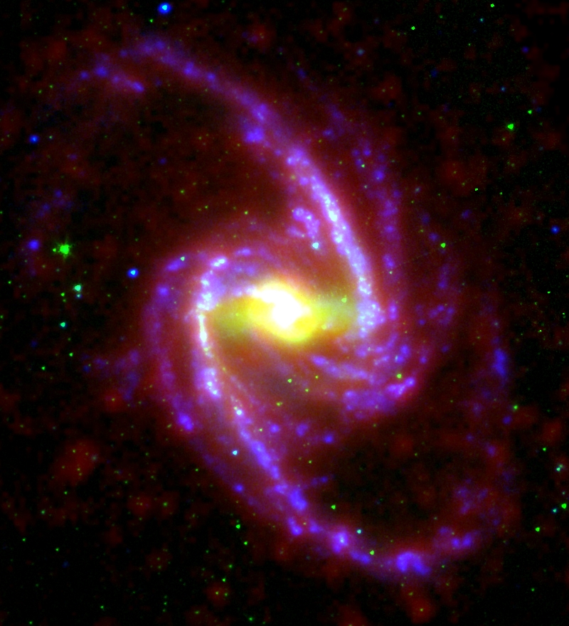 Blue: GALEX 2267 Angstrom ultraviolet image of young stars