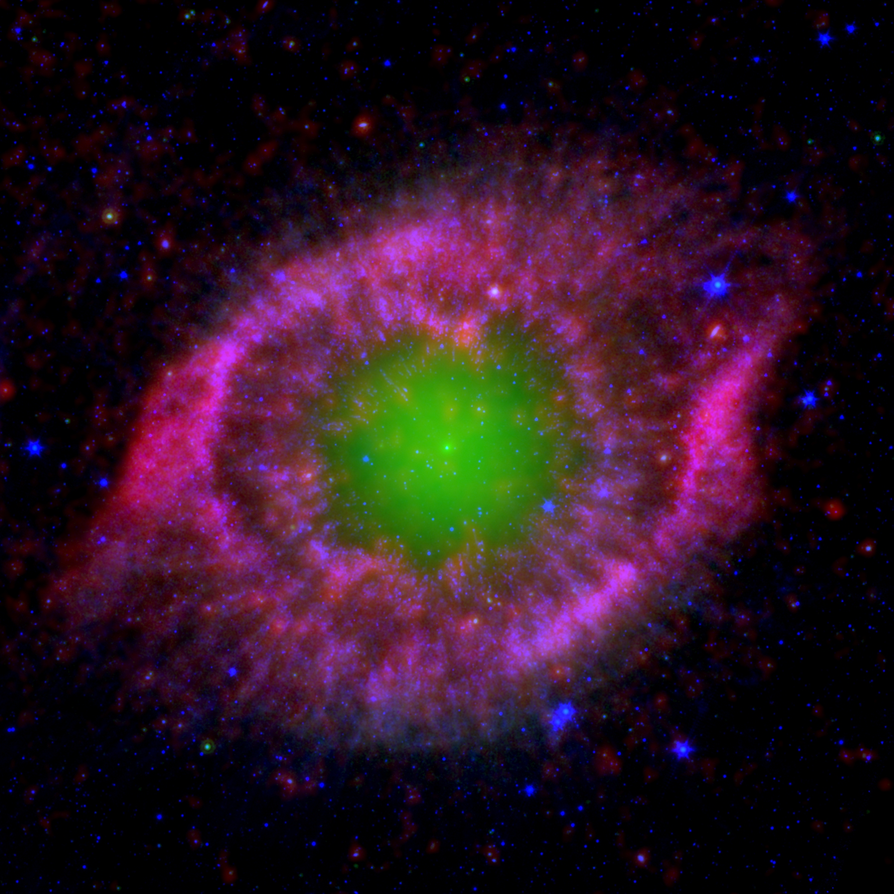 Green: Spitzer 3.6 micron near-infrared image of older stars